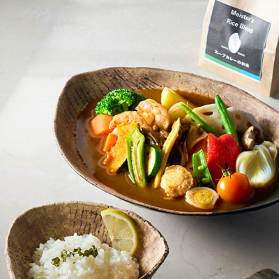 野菜やお肉の入ったカレーとごはんが一体感を生むように、大粒で食べ応えのある山形県のお米“雪若丸”をベースにブレンド。