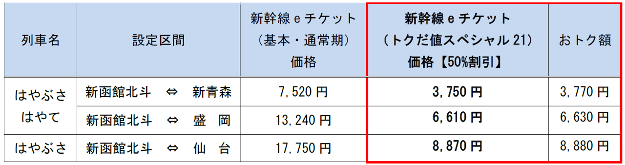 東北・北海道新幹線「新幹線eチケット(トクだ値スペシャル21)」