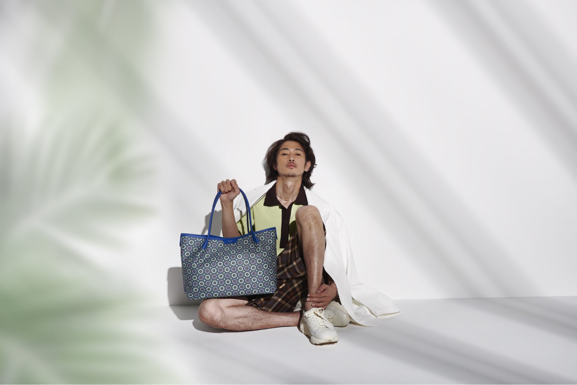 ヨーロッパとアフリカの文化が混じり合うマラケシュの美術館などで目にするエキゾティックで美しいモザイク柄。そのイメージをプリントに表現したトートバッグは、大容量ながら計量感を備え、ちょっとした旅のシーンにも最適。