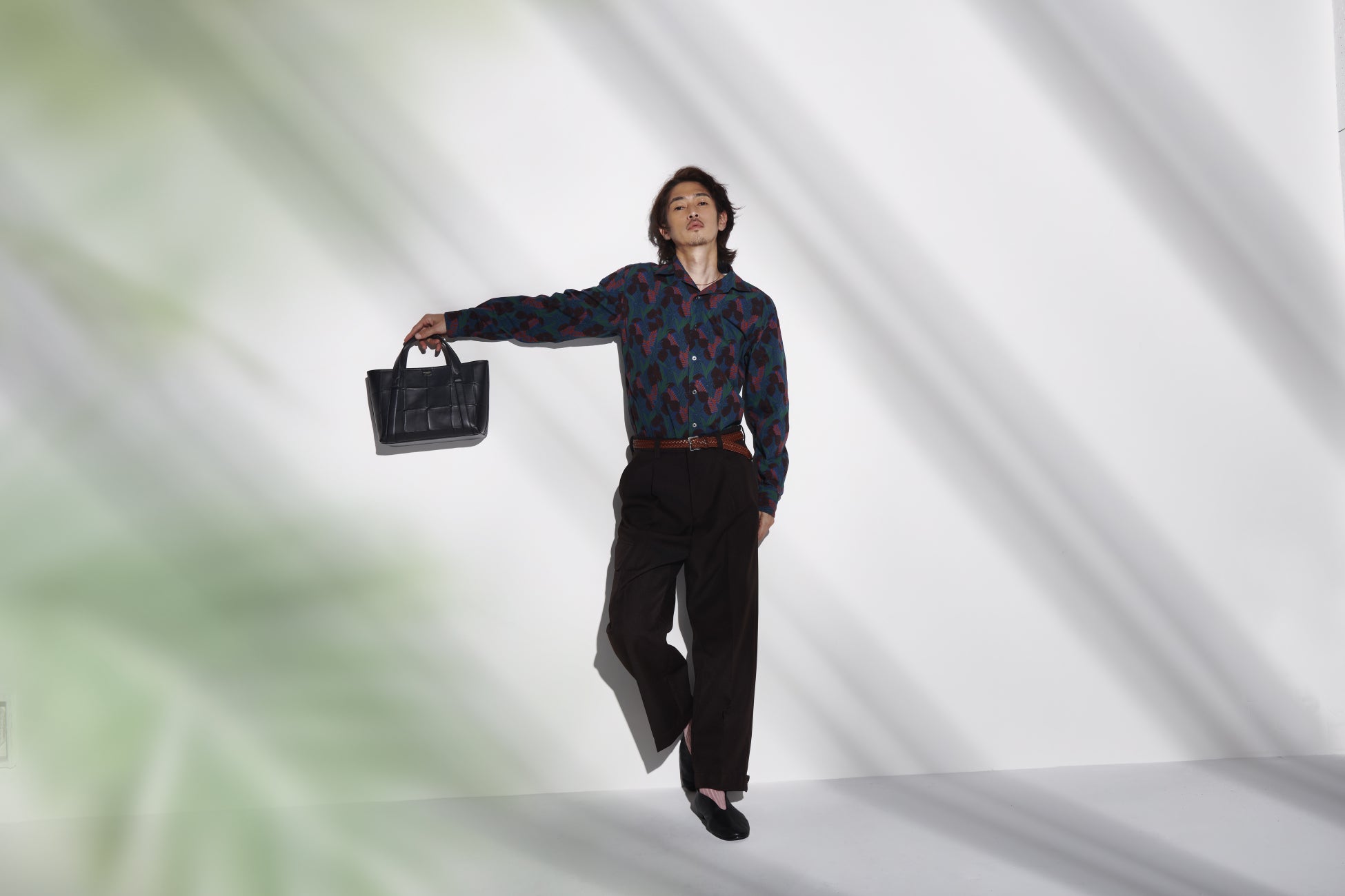 タイル模様をモチーフにしたパッチワークシリーズには、よりコーディネートしやすいシックなオールブラックのワントーンも揃う。レザーの高級感が引き立つシンプルなボディに、幾何学的なラインが奥行と軽快さを与え、さりげなく今どきの個性をアピールできる1点。