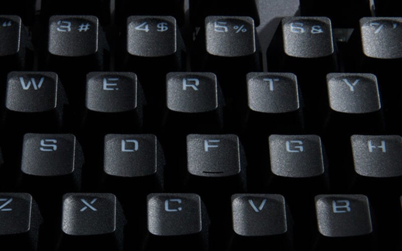 ゲームプレイ中の各指のキーストローク角度を研究し尽くし、高速で打ち込んでも指がずれないようキートップをラウンドさせました。Z~Mキーは左手親指での操作に最適化した特殊なアシンメトリー形状を採用しています。