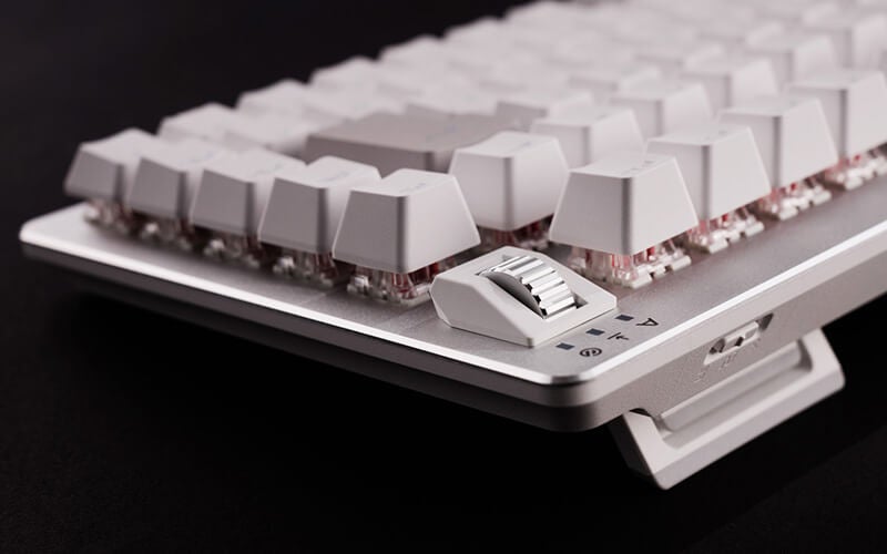 デスク上でマウスの操作スペースを最大限に確保できる75%サイズです。Esc+F1~F12+ダイヤルがあることで音量や画面の明るさ、ゲームモードの調整などが行えるため、ゲームプレイ時はもちろん通常利用の際も操作性を損ないません。