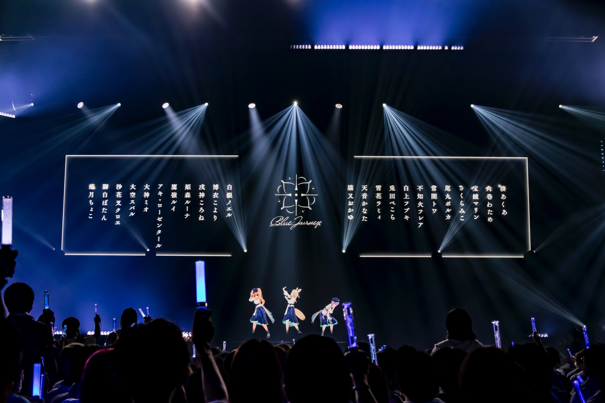 白上フブキ、湊あくあ、猫又おかゆ、兎田ぺこら、雪花ラミィによる朗読で幕を開けたアンコールでは、「Blue Jouney」の次の旅への気持ちが込められた新曲「水たまり」を、総勢23名のメンバー全員で披露。曲のラストでは「ラララ」の大合唱でハッピーな光景を描き出し、来るべきネクストライブへ思いを繋いだ。客席に溢れていたたくさんの笑顔。それは、このプロジェクトの存在意義を真っ直ぐに証明していたように思う。すべての人にとっての希望になり得る「Blue Journey」の意義ある旅は、ホロライブメンバーたちの熱い思いを抱きながらこれからも続いていく。