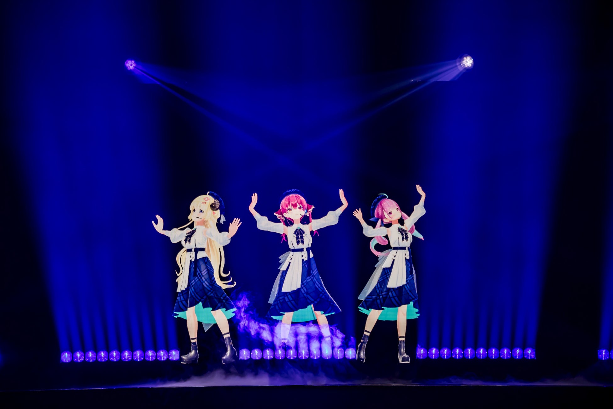 続く「君になりたかった」では、心の中に潜む劣等感と他者への羨望の狭間で揺れ動く感情をさくらみこ、宝鐘マリン、尾丸ポルカの3人が伝えていく。曲ごとに変化していくメンバー編成、その組み合わせによって各メンバーの新たなボーカリゼーションが引き出されているのがおもしろい。それぞれの相乗効果により、各自の持つ魅力が何倍にも膨れ上がっていく様に、客席からは大きなクラップが鳴り響いた。