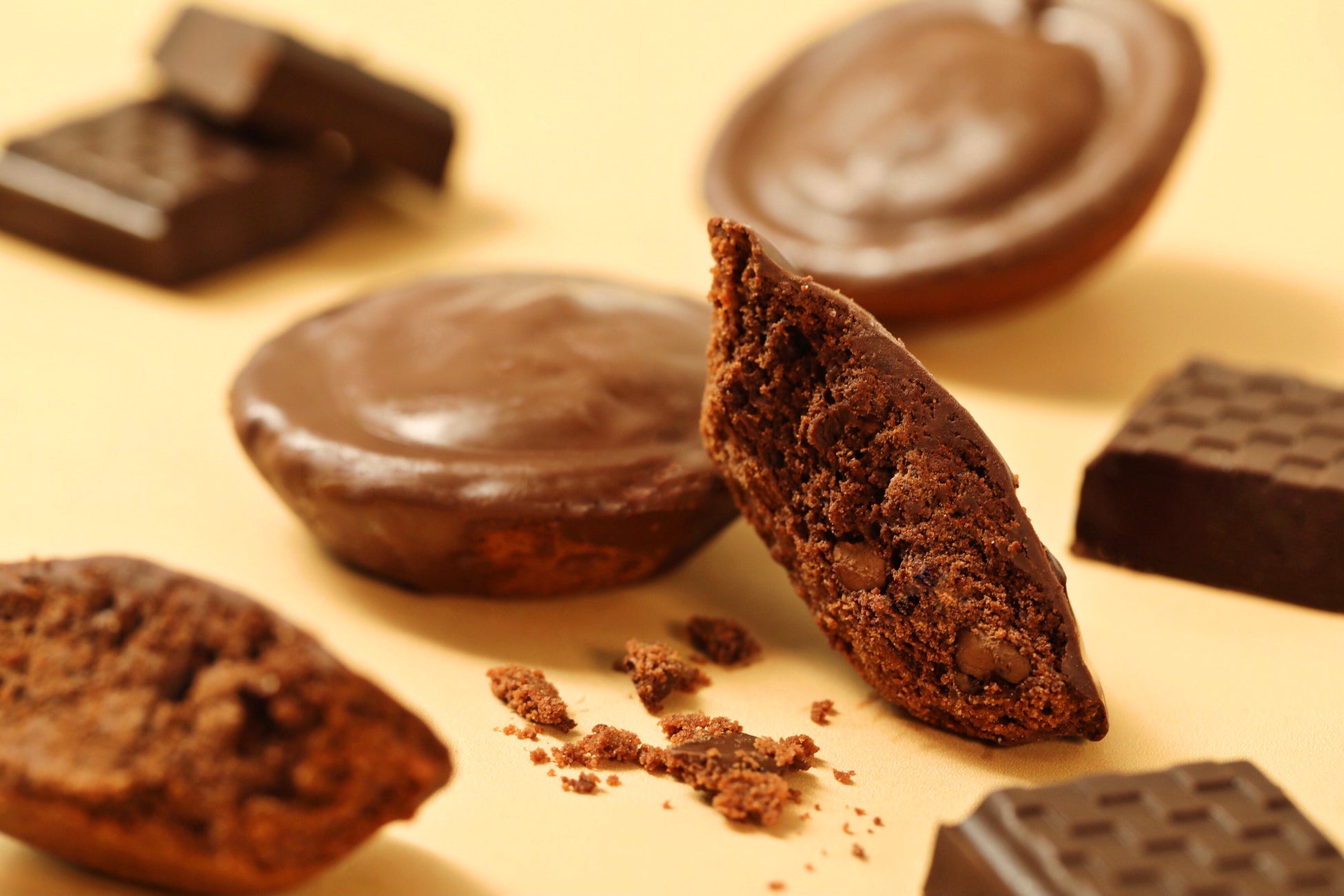ろ食感のタルト生地と、しっとり食感のブラウニー生地、ザクザクとしたチョコチップとな