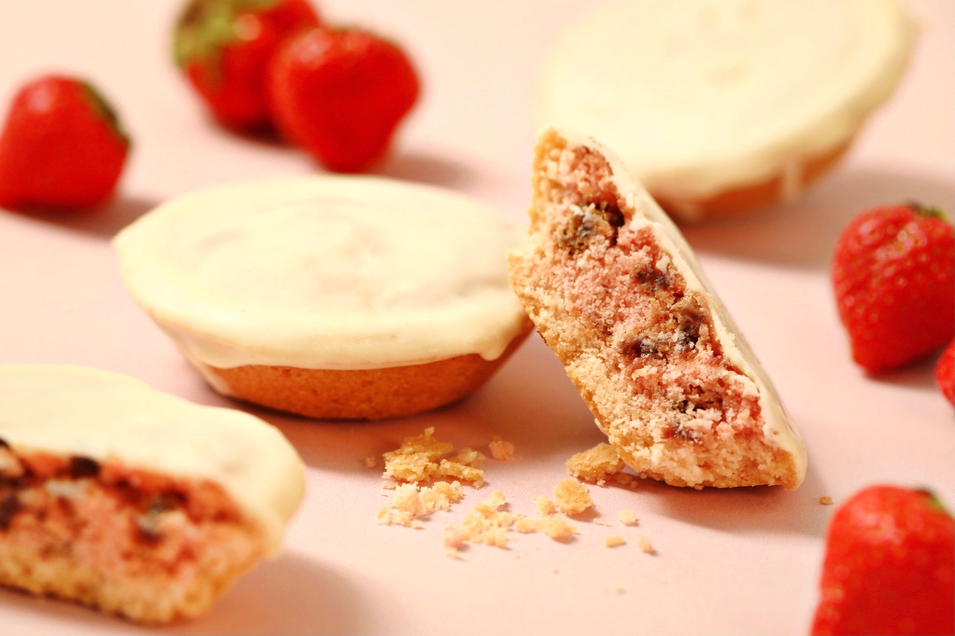 ワイトチョコが絶妙にマッチ。ビジュアルのピンクカラーも可愛らしい、いちご好きの方に