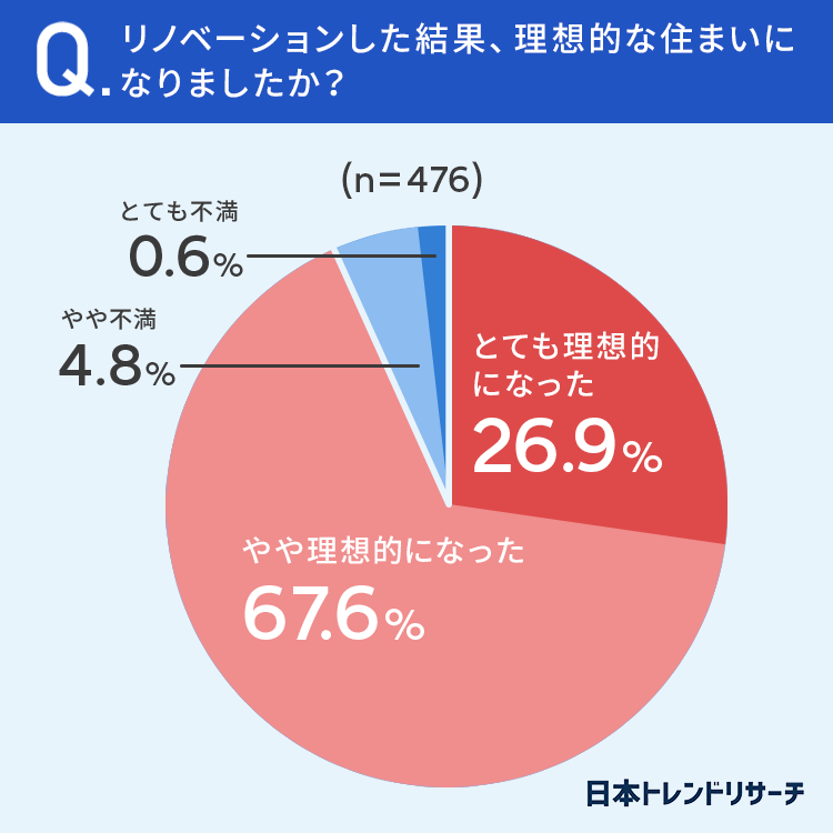 ■94.5%がリノベーションした結果「理想的な住まいになった」
