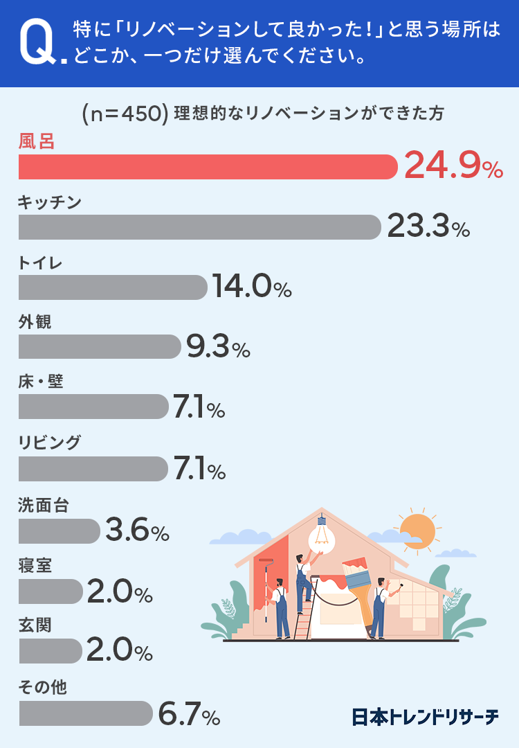 【リノベーションして良かった場所とは?】24.9%が「お風呂」でもっとも多い結果に