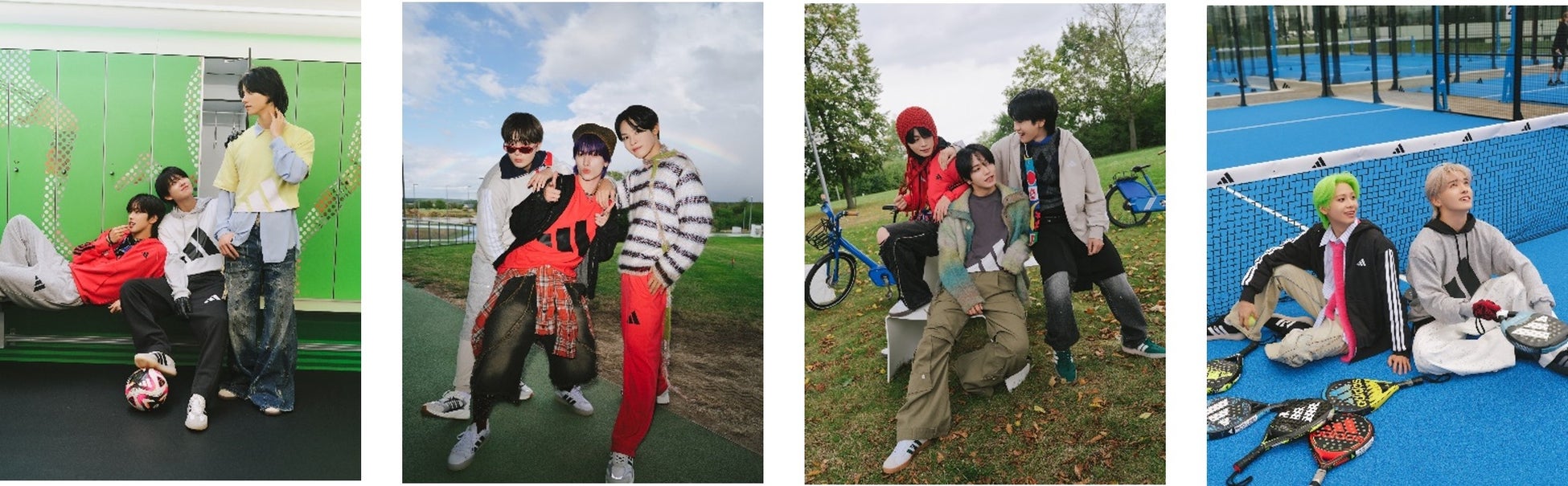 キャンペーンビジュアルには、アディダス スポーツウェア アンバサダーのJO1を起用。撮影は、ドイツにあるアディダス本社で行われ、スポーツをしたり、自由に楽しむ日常のような姿を切り取っています。彼らが放つグルーブ感とファミリーのようなリラックスした様子を、本コレクションのキャンペーンストーリーと重ね合わせて表現しています。