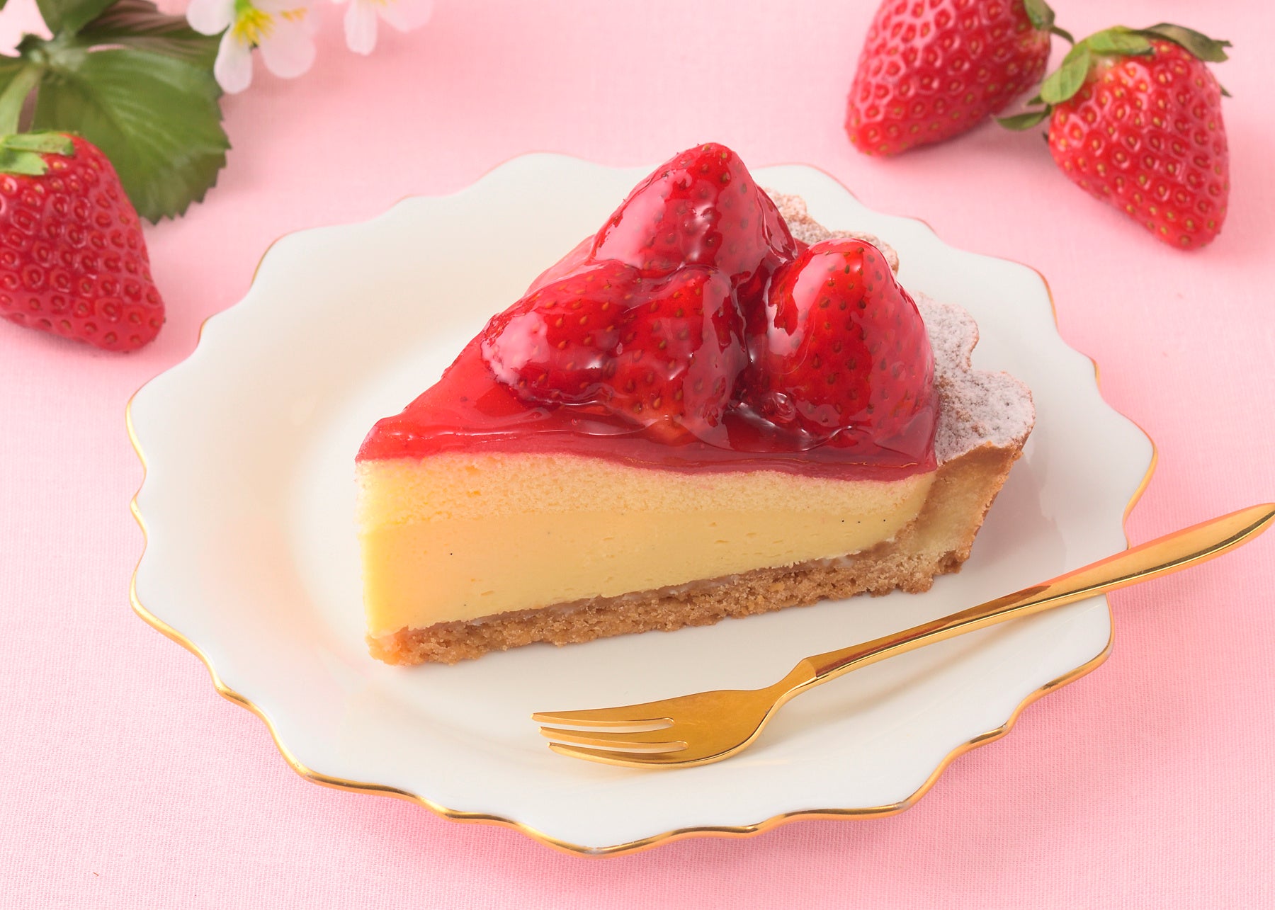 香り高く、上品な甘ずっぱさが特長の旬の苺「きらぴ香」を贅沢にのせました。苺のジューシーな甘ずっぱさとカスタードのまろやかな甘み、さっくりと香ばしいタルトが絶妙に調和する季節限定タルトです。