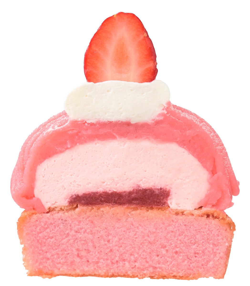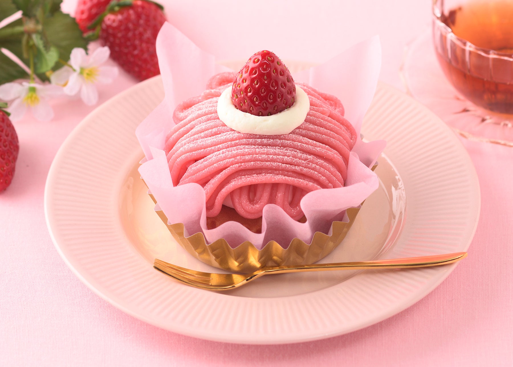 どこを食べても苺を感じる、苺づくしの季節限定モンブランです。苺マドレーヌの上に、まろやかな甘みの苺ミルククリームと、濃厚な味わいの苺あんを絞り、アクセントにほんのり甘ずっぱい苺ジャムを忍ばせました。苺の香りと味わいが口いっぱいに広がります。