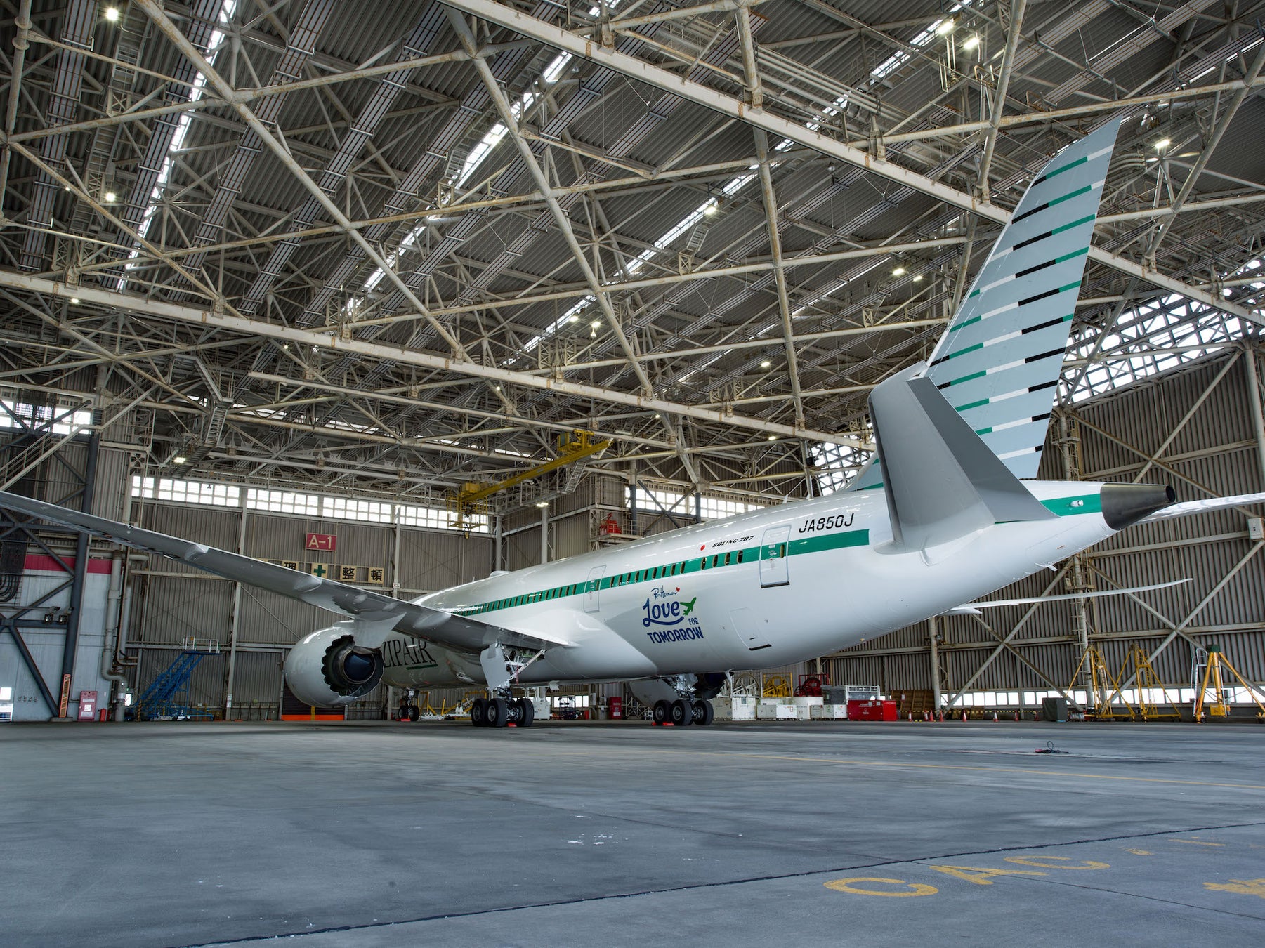 ボーイング787-8にオリジナルロゴを配したコラボレーション機体を1/200で再現したロマンを感じるモデルプレーン。主尾翼を胴体に差し込むだけで完成するスナップインモデルです。素材には再生ABS樹脂のリサイクルプラスチックを用いています。