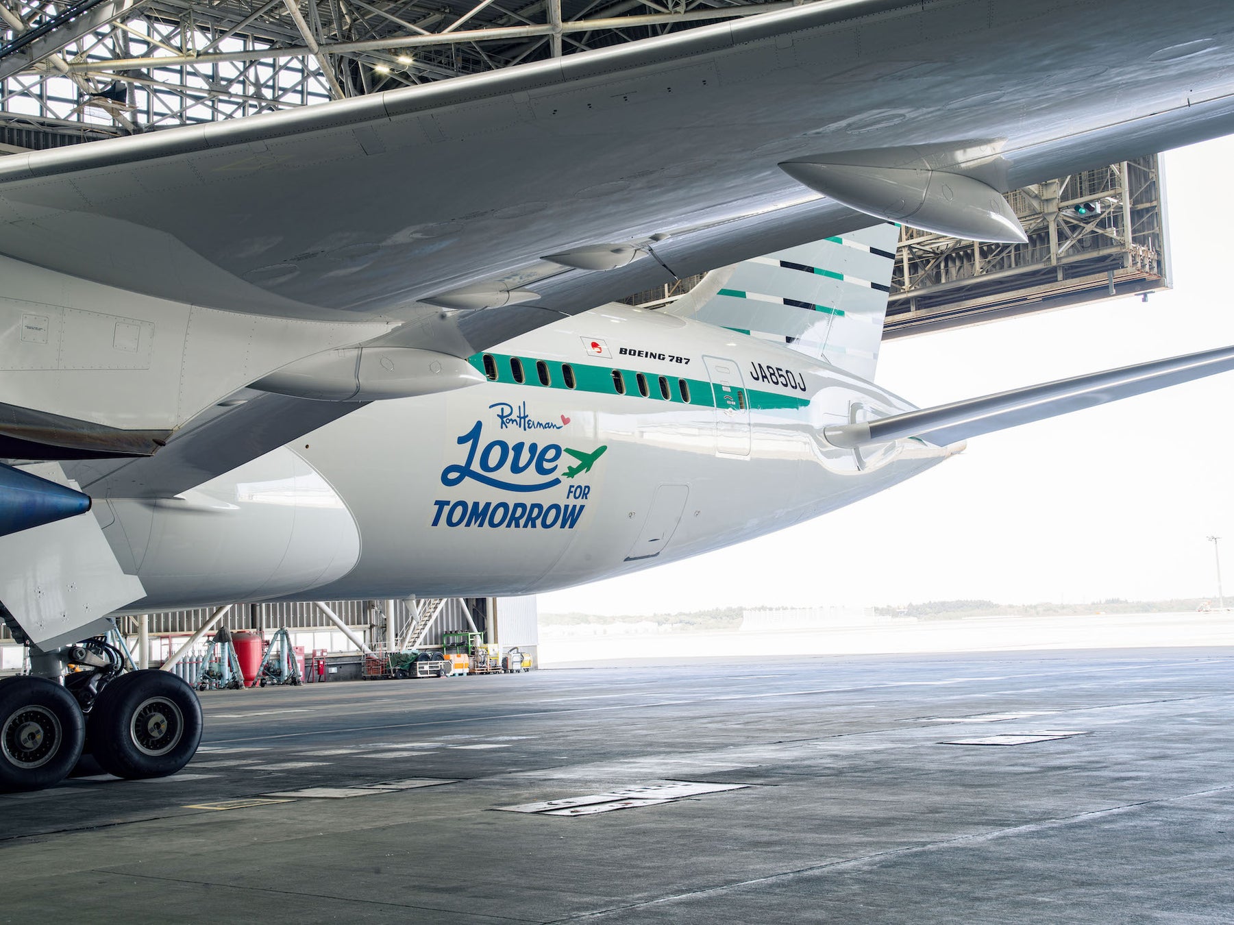 ロンハーマンが掲げるスローガン“Love for Tomorrow”をベースに、特別なコラボレーションオリジナルロゴをデザインしました。コラボレーションフライトの象徴として機体へのデカール装飾、機内ヘッドレストカバーにも使用します。