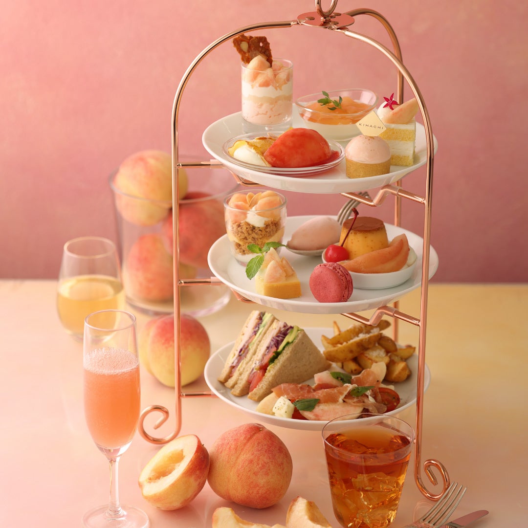キハチ 青山本店に甘く芳醇な香りが広がる桃の季節が到来。旬の桃を主役にしたスイーツ&セイボリーを味わう「KIHACHIのアフタヌーンティー ~ピーチスペシャル~」で、優雅な夏のティータイムを提案します。