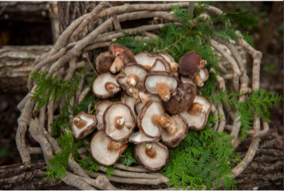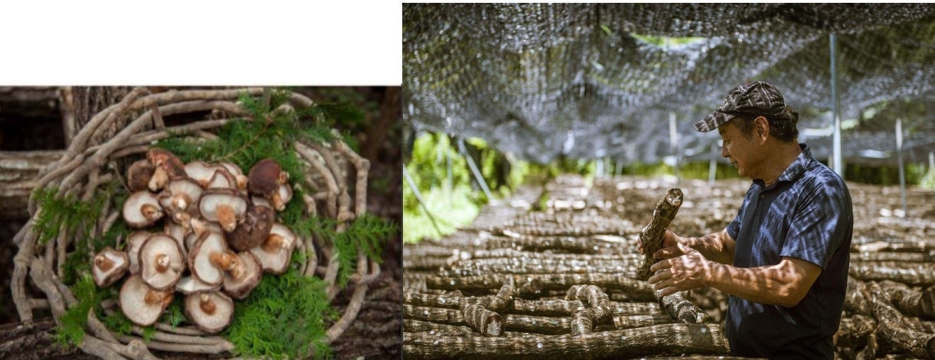 “木を切り続けなければ、森は死んでしまう”という考えか ら、猪名川町の里山の木を間伐、その原木を使って栽培。