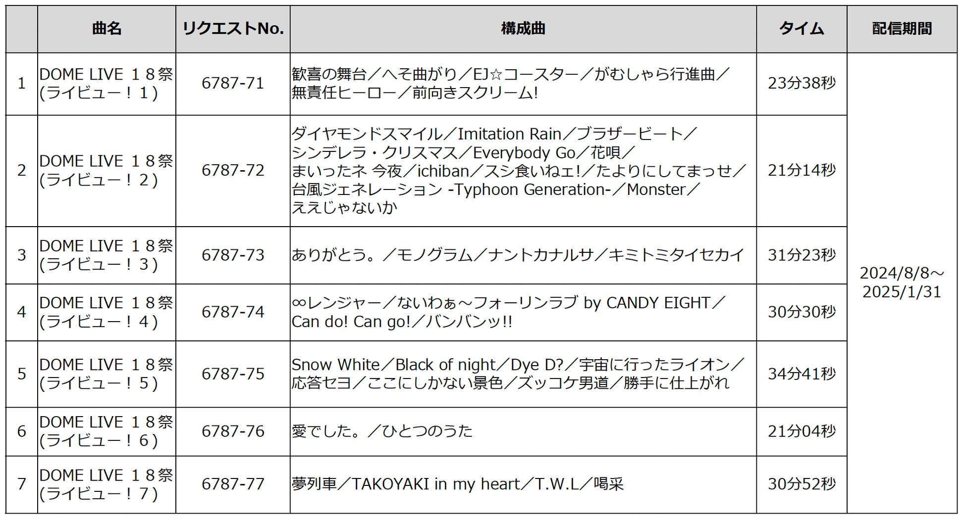 DAMの「LIVE DAM AiR/Ai」で提供する「ライビュー!」で、SUPER EIGHTが18周年を記念して2022年12月から翌年1月にかけて開催したツアー“冬の18祭” から、2023年1月の大阪・京セラドーム公演のライブシーンをそのまま楽しめる長尺カラオケコンテンツとして独占配信。※1
