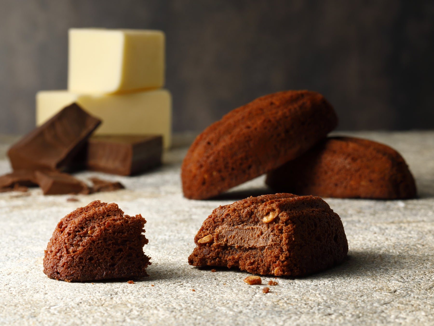 ブラウニーの生地は、フランスでつくられた発酵バターを使用し、アーモンドダイスの香ばしさと食感をアクセントに仕上げました。中には、ヘーゼルナッツが豊かに香るジャンドゥーヤを包み、濃厚な甘みをお愉しみいただける逸品でございます。