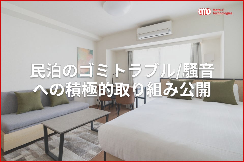 今回、多くの方に民泊へ安心して宿泊してもらうこと、また、地域の方にとっても安心の内容となると考え、私たちの騒音、ゴミのオペレーション改善の事例を公開致します。