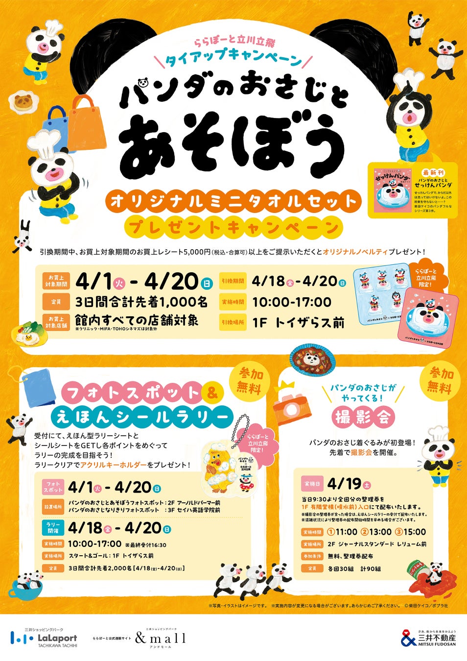【絵本「パンダのおさじ」×ららぽーと立川立飛】タイアップキャンペーン「パンダのおさじとあそぼう」が4月1日(火)より開催