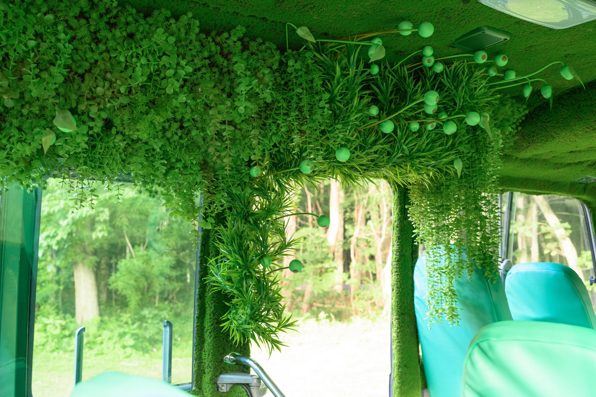 特徴1 まるでコケの世界! バスの中に生い茂るコケを表現
