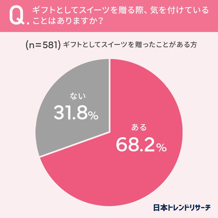 ■68.2%が、ギフトとしてスイーツを贈る際、気を付けていることが「ある」