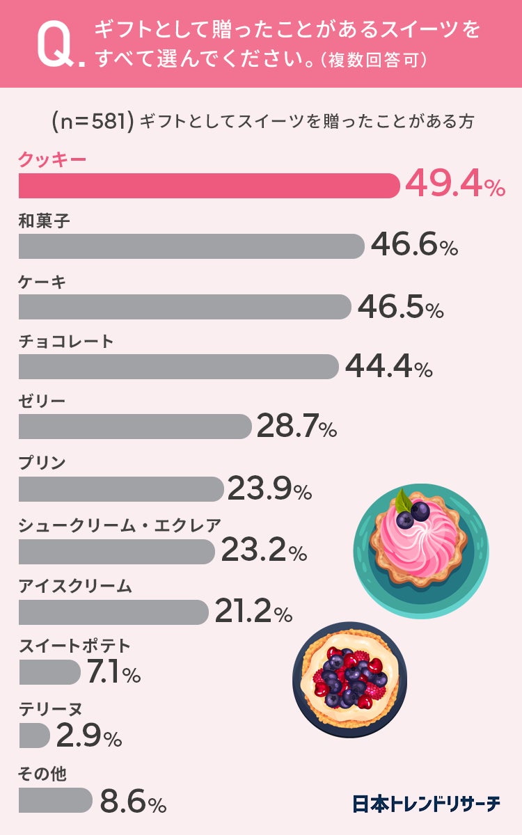 日本トレンドリサーチ・ギフトでもらったら嬉しいスイーツに関する調査