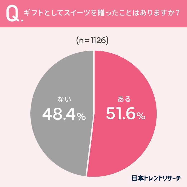51.6%と、半数以上の方がギフトとしてスイーツを贈ったことが「ある」と回答しています。