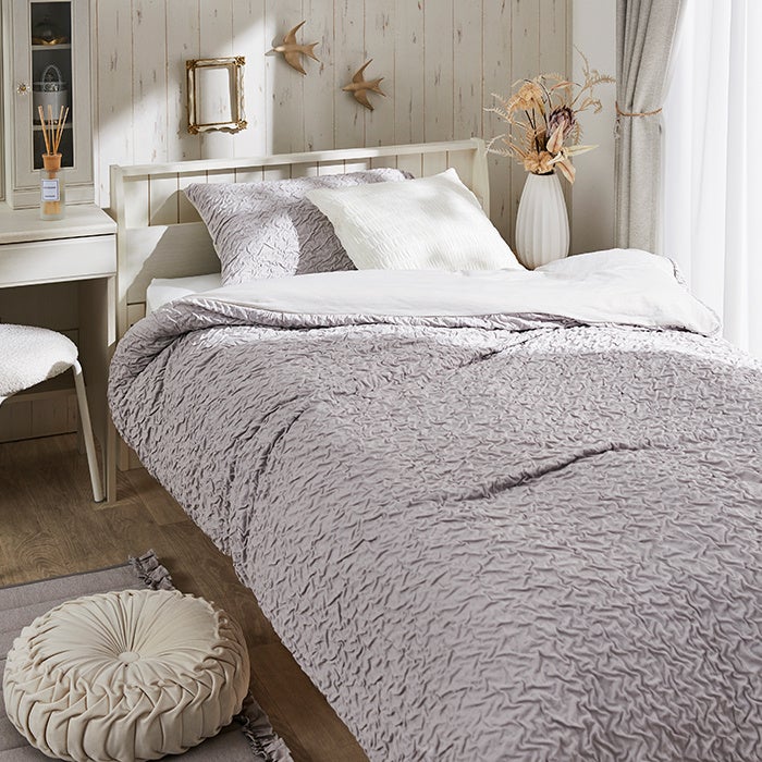 デコホームでは、夏の定番「Nクールシリーズ」をオリジナルデザインで販売しています。 くすみカラーの無地タイプだけでなく、人気のラインアート柄や花柄、ドット柄などお部屋を彩るデザインを多数取り揃えています。ふんわり触感が気持ちいいクシュクシュ素材のNクールアイテムも今年は新登場。お気に入りのコーディネートを見つけて、この夏をひんやり快適に過ごしてみませんか。