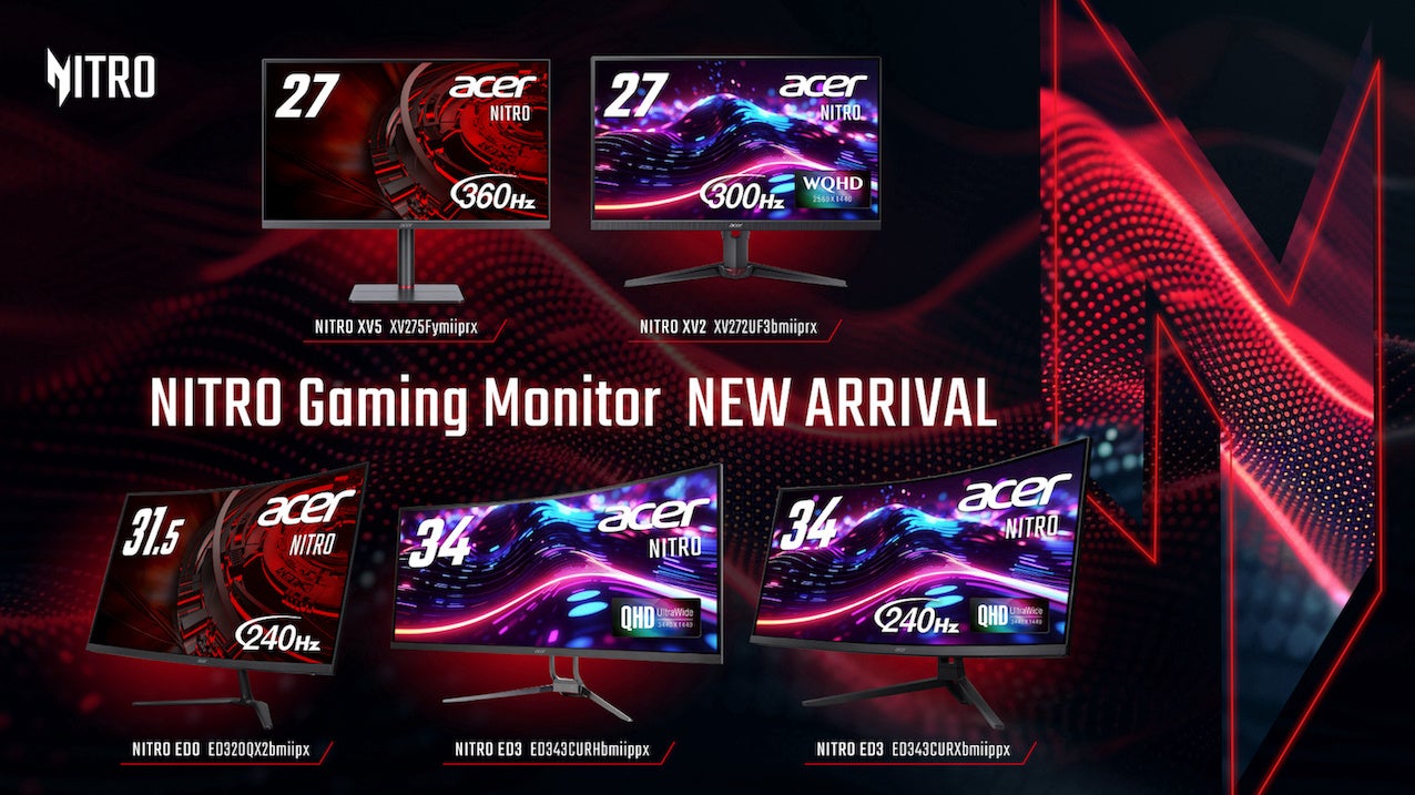 高速プレイのフルHD 360Hzから湾曲没入感のUWQHD 100Hzまで!Nitroゲーミングモニターより、新機種5種が登場!