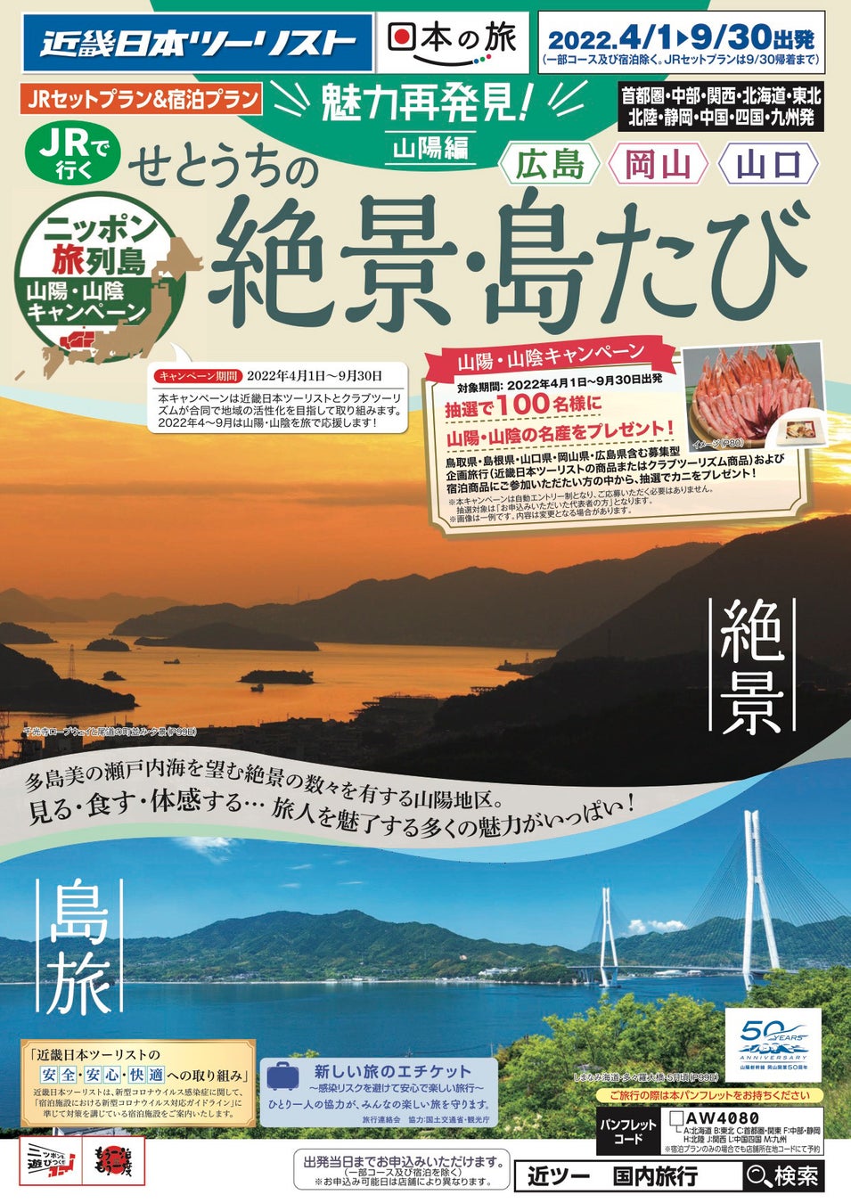 KNT-CTホールディングス株式会社(本社:東京都新宿区 社長:米田 昭正)は、グループ各社が連携し、日本国内の宿泊、観光、運輸などの関係協力機関や自治体、DMO、観光協会等の協力のもと、地域の魅力を掘り起こし、国内各地域の活性化を図る当社独自の「ニッポン旅列島 山陽山陰キャンペーン」を、このほど開始いたしましたのでお知らせいたします。