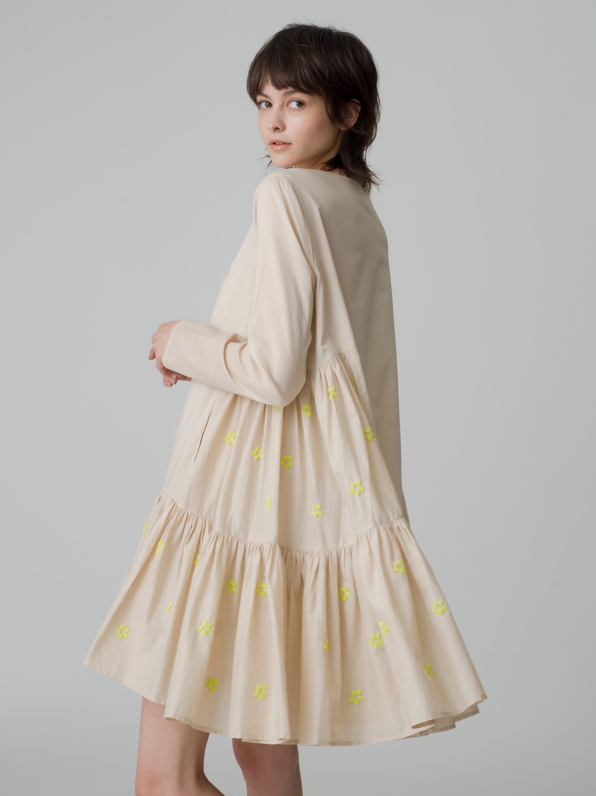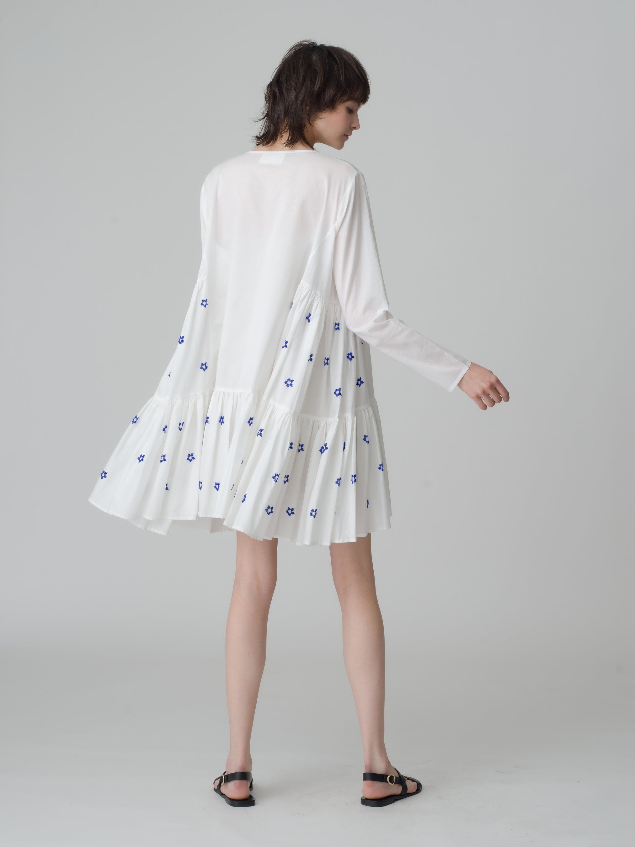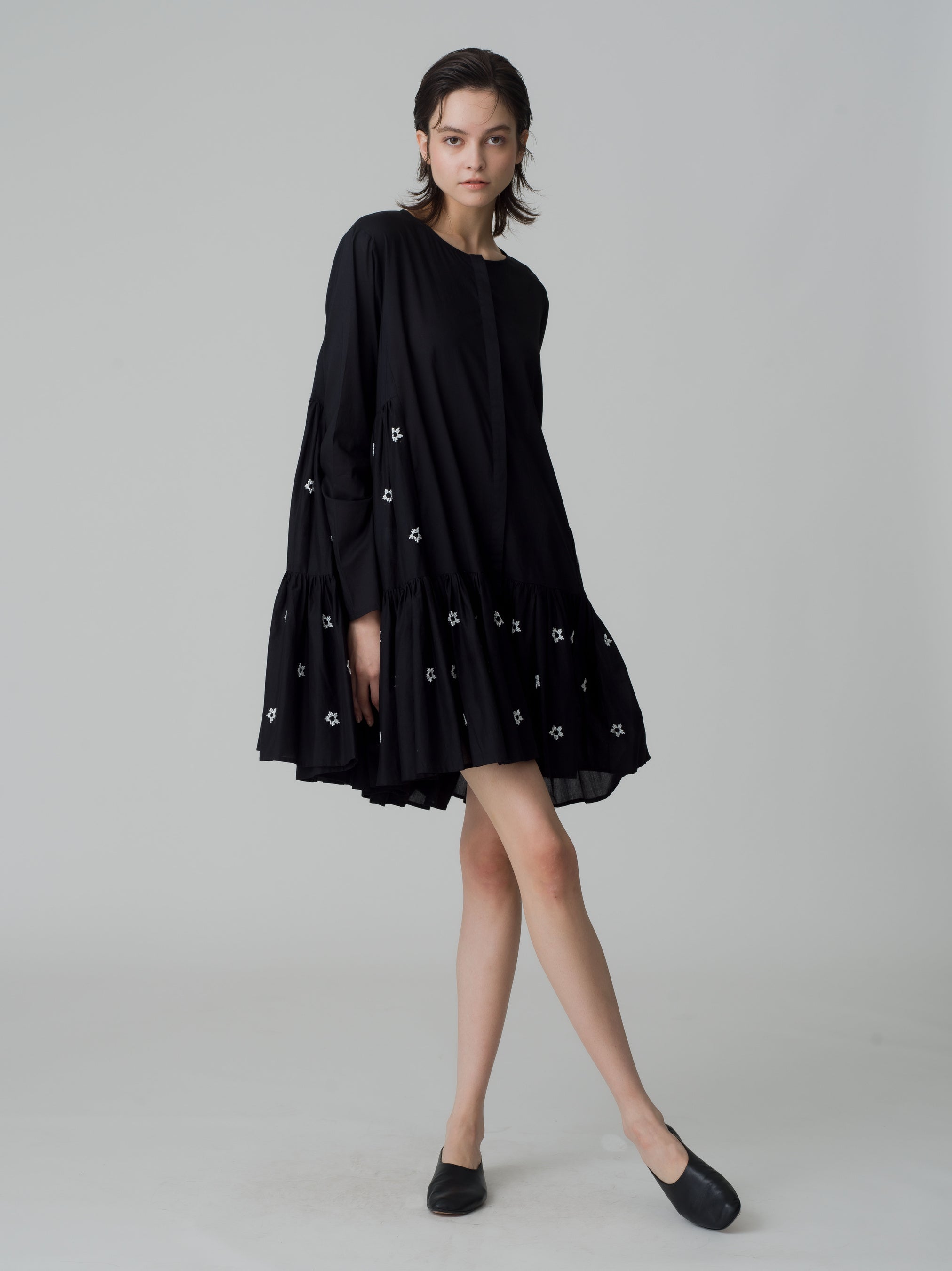 今回はベーシックカラーにビーズフラワーを施した3色を日本のためだけに特別に作成。 細かく見るとカラーによって花びらに使うビーズのデザインが違うという、とても繊細なこだわり が。どんな方にも似合うカラーを揃え、多くの女性に着てほしいというデザイナー マリーナの思い のこもったでドレスです。