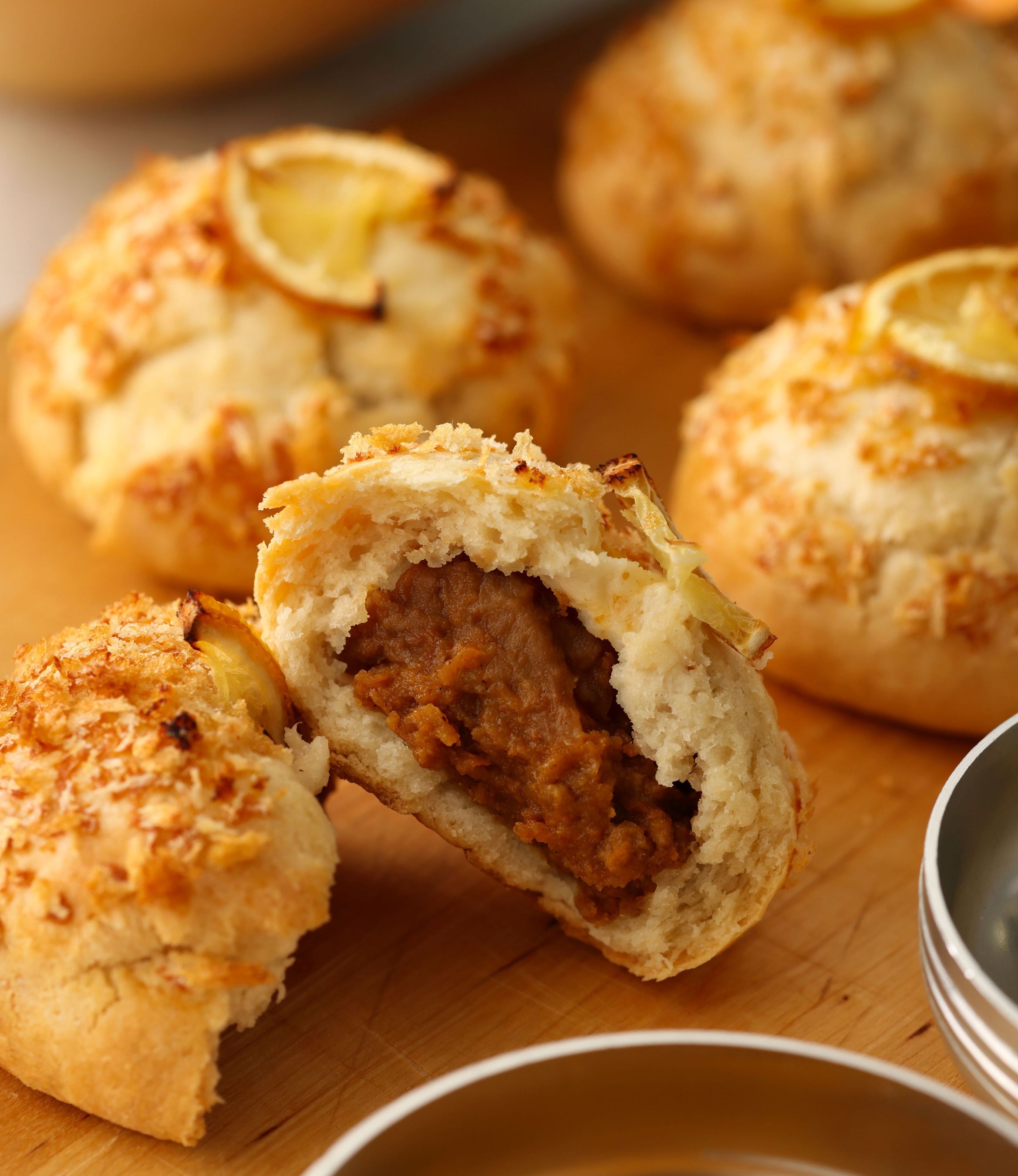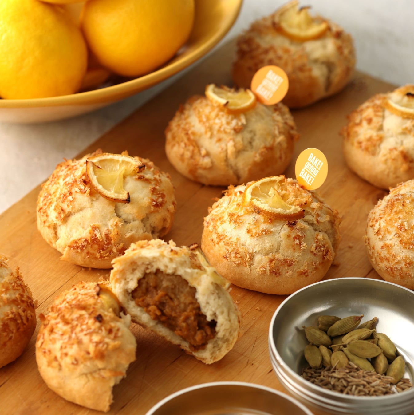 クミンやカルダモンなどスパイスが香るキーマカレーにレモン果汁で爽やかさをプラスし、バターミルクスコーンで包みました。温めてさらに美味しい!