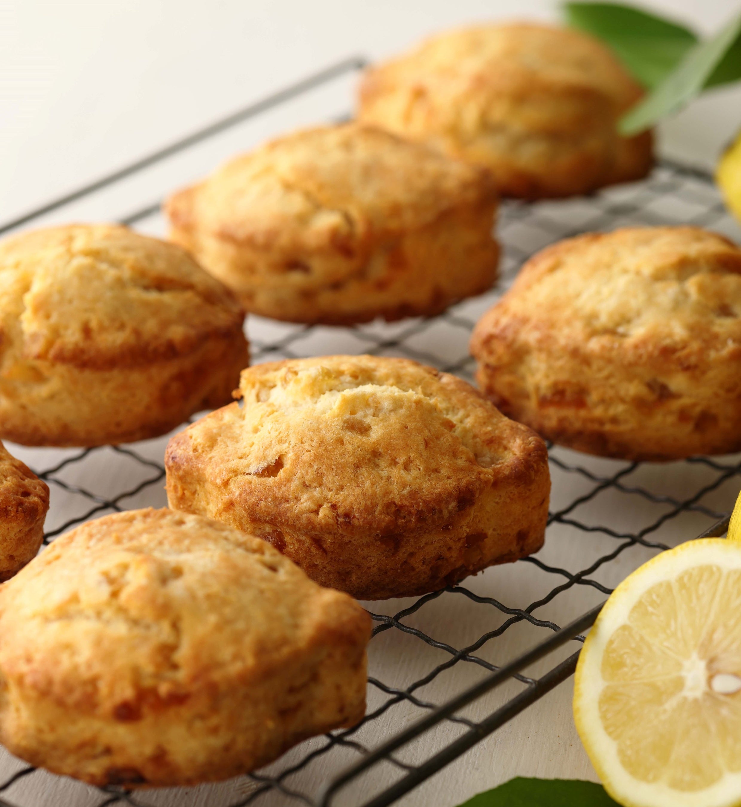 リモンチェッロに漬けたレモンピールの爽やかな風味と味わいが広がる軽い食感のスコーン。