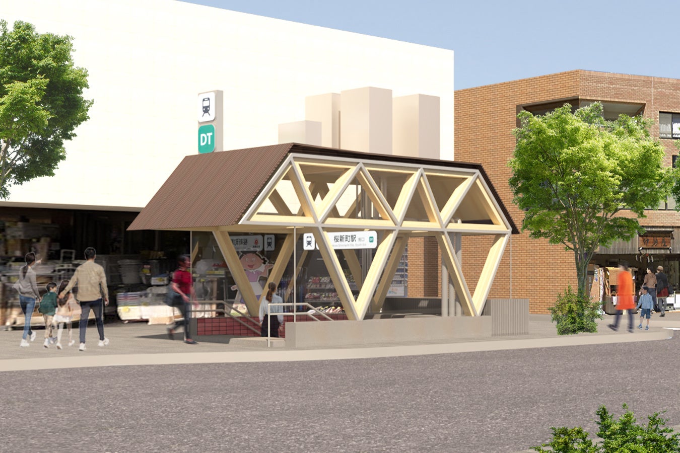 東急株式会社と東急電鉄株式会社(以下、両社)は、田園都市線地下区間5駅(池尻大橋駅~用賀駅)のリニューアルプロジェクト「Green UNDER GROUND」第2弾の桜新町駅リニューアル工事において、北口、西口出入口上家(以下、本物件)を木材で新設します。全ての構造部材を木材とした地下駅から地上への出入口上家は全国で初めて※1です。