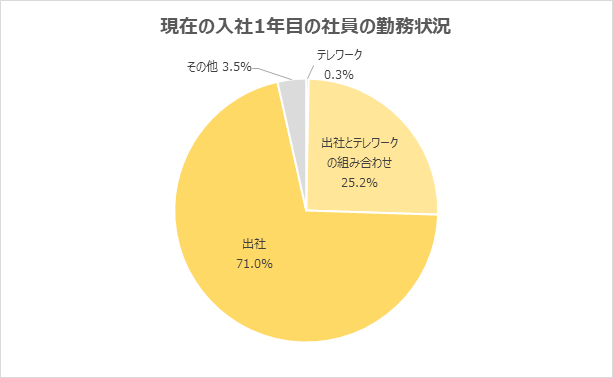 (3)現在の入社1年目の勤務状況は「出社」が71.0%。「テレワークのみ」は0.3%に留まる