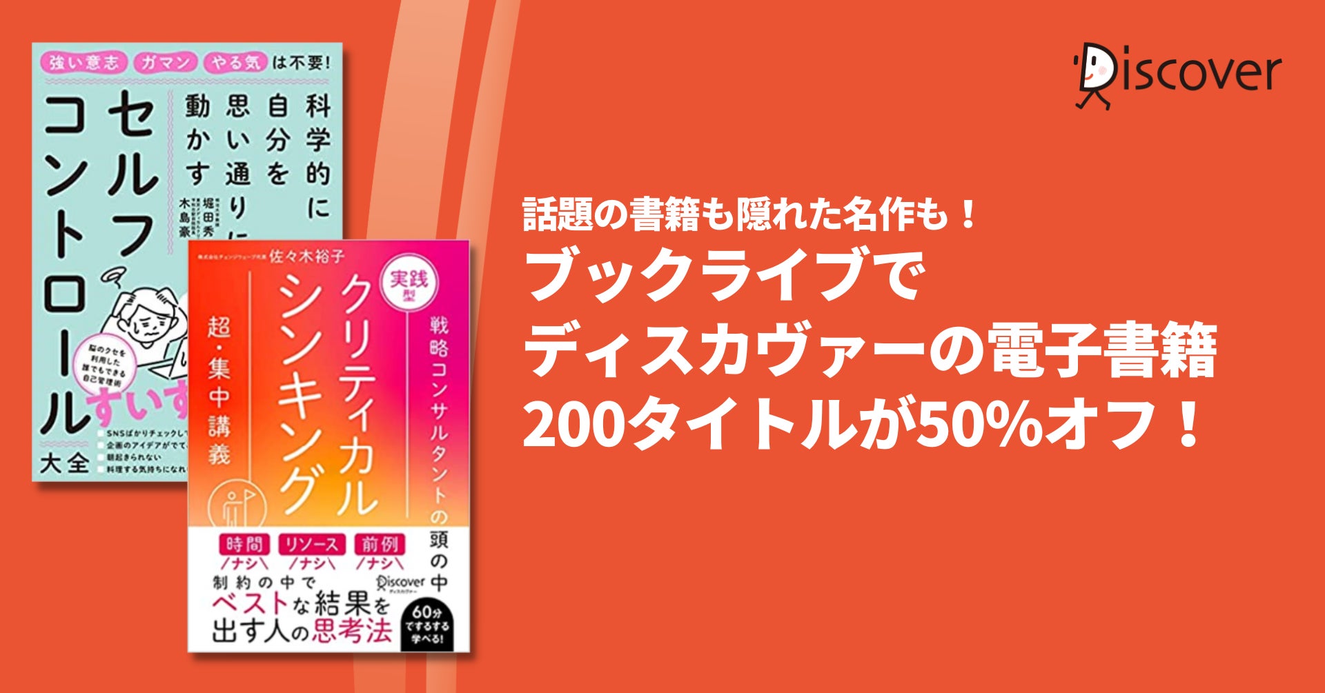 株式会社ディスカヴァー・トゥエンティワン(本社:東京都千代田区、取締役社長:谷口奈緒美)は、2022年11月18日から11月30日の間、ブックライブにてディスカヴァーの電子書籍200タイトルが50%オフになる割引キャンペーンを開催します。