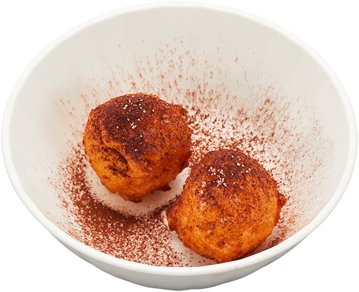 ココアパウダーとスティックシュガーを店内で配合。シャリ生地のもっちり感と相性抜群!