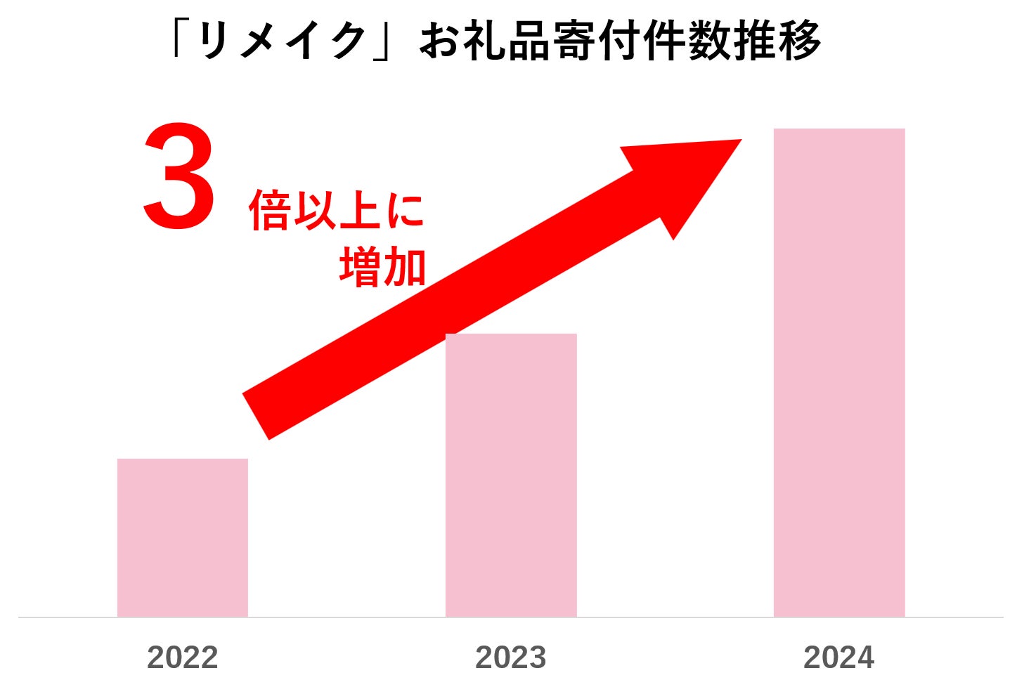 ※4 2024年1月1日~2024年12月31日と2022年1月1日~2022年12月31日の「リメイク」お礼品の寄付件数から算出