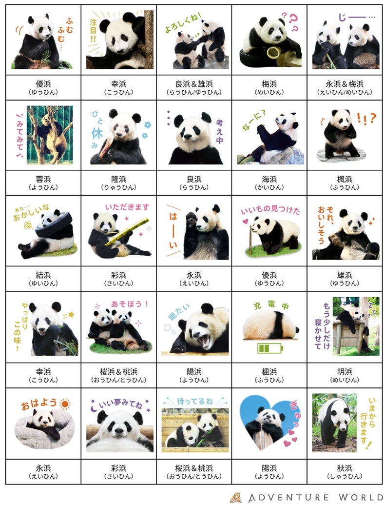 アドベンチャーワールド(和歌山県白浜町)では、これまでアドベンチャーワールドで暮らしたジャイアントパンダと応援してくださった皆様に感謝の気持ちを込めて、オリジナルLINEスタンプ第3弾としてジャイアントパンダ20頭が大集合した「ありがとう!パンダファミリー」を発売開始しました。