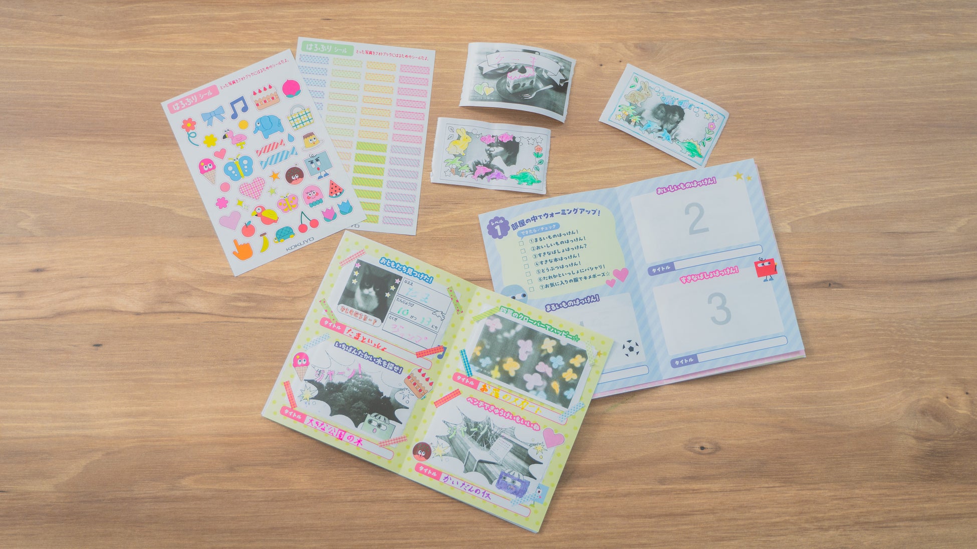 ミッションとして、撮影モチーフのヒントが書かれた「ミッションブック」、プリントしたものを貼って家族や友達にプレゼントできる「フォトフレーム」、フォトフレームに写真を貼り付けるための「シール」、「かんたんスタートガイド」の特別付録が付属しています。