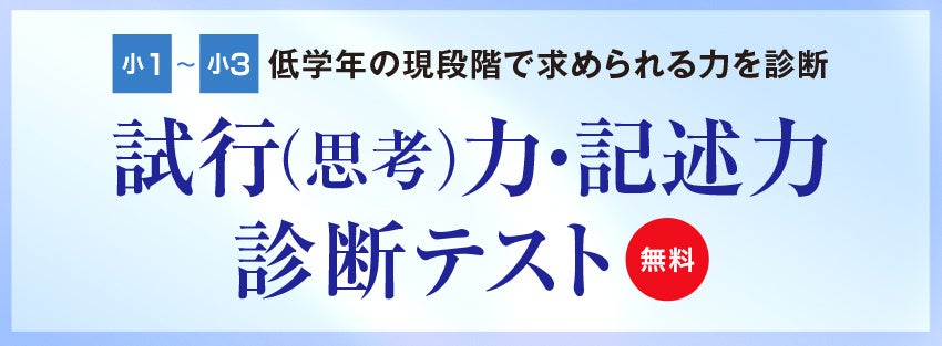 与えられた未知の課題を試行錯誤して正解を導き出す“試行(思考)力”と、考えた答えを書き言葉で表現するための“記述力” は、最難関中学受験では必ず求められます。「試行(思考)力・記述力 診断テスト」では、筑駒・御三家・駒東中合格を目標とした学習に必要な力を分類し、低学年の現段階で求められる力を診断します。繁雑な計算や高度な知識を要求する出題ではなく、思考過程を重視する内容で、強み・弱みを客観的に分析します。
