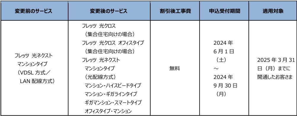 (1)「フレッツ・ISDN」、「INSネット64」、「INSネット64・ライト」、「INSネット1500」、 「『フレッツ光』初期工事費を無料とすることに合意した事業者さまが提供するCATVインターネット接続サービス」より「フレッツ光 クロス」、「フレッツ光 ネクスト」へ移行する場合の工事費等の無料