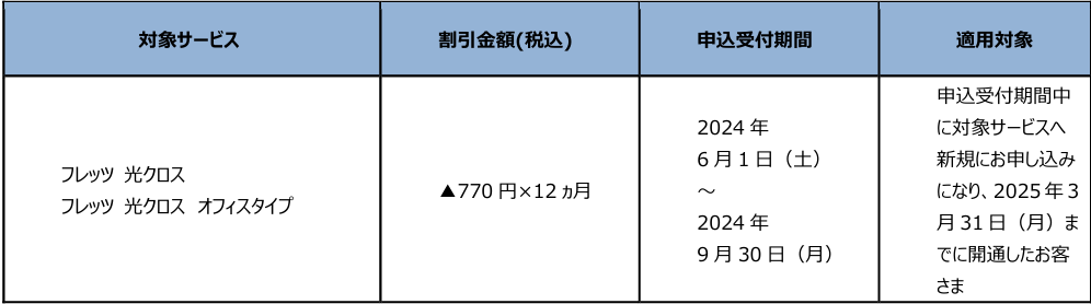 フレッツ光新規申込時等の割引の実施について