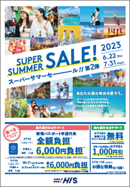 株式会社エイチ・アイ・エス(本社:東京都港区 以下、HIS)は、2023年6月22日(木)より開催する「SUPER SUMMER SALE第2弾」において、パスポートの新規取得費用サポート対象を、現在実施中の12歳未満のお子さま、ハネムーナーに加え、60歳以上の方、母娘でご旅行の方、1人旅の方にも拡大いたします。