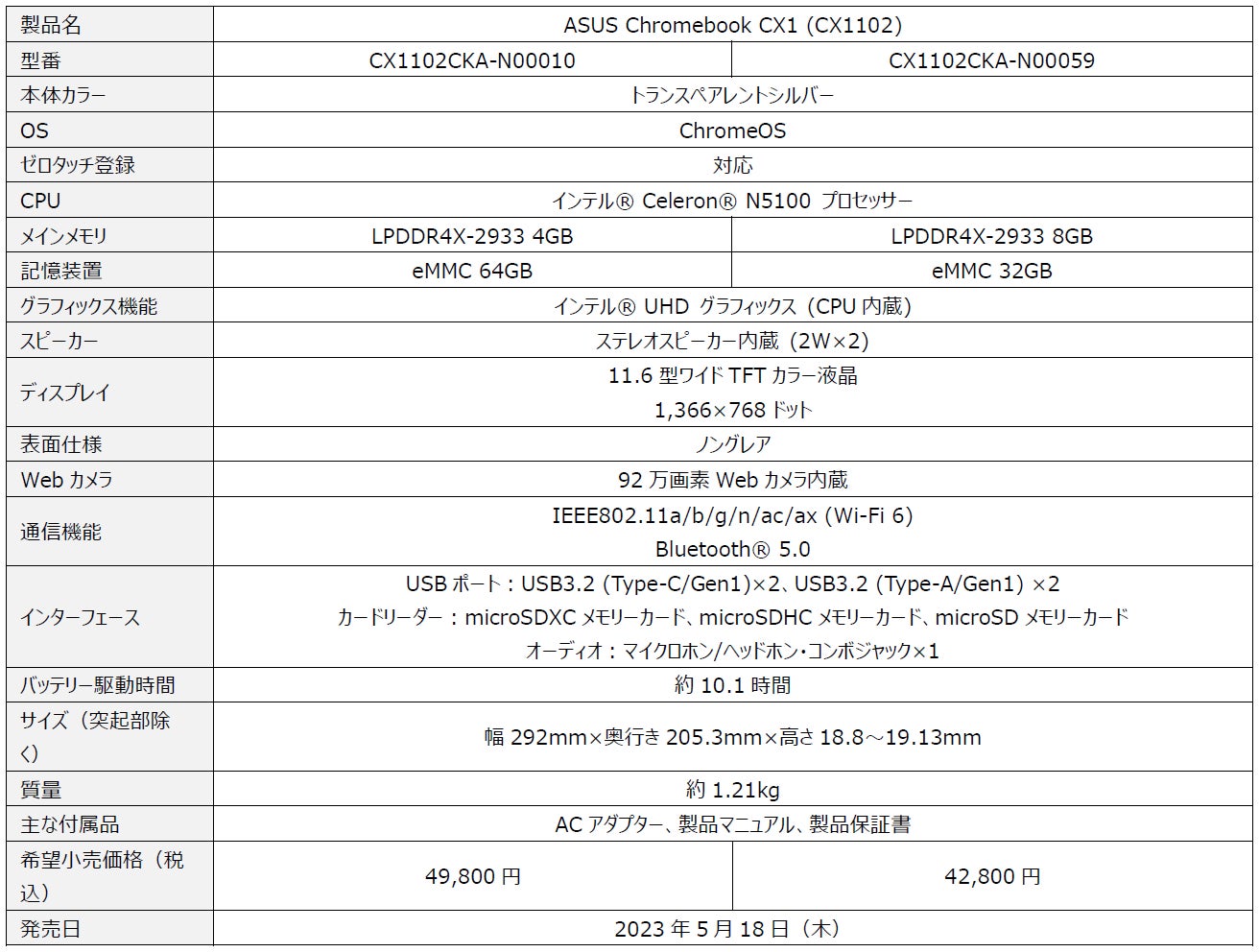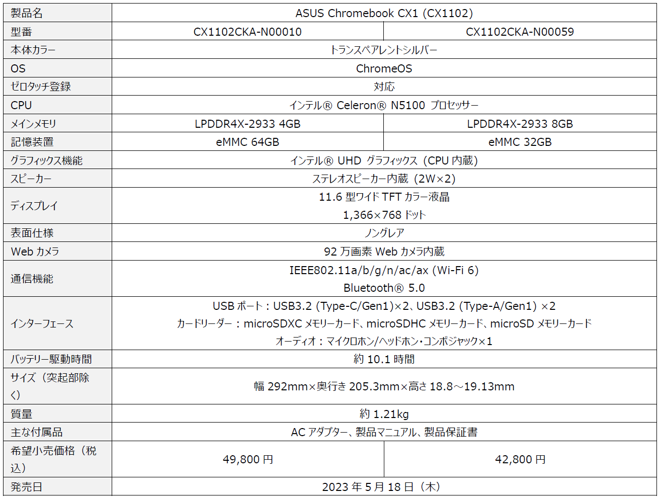 製品情報:https://www.asus.com/jp/laptops/for-home/chromebook/asus-chromebook-cx1-cx1102/