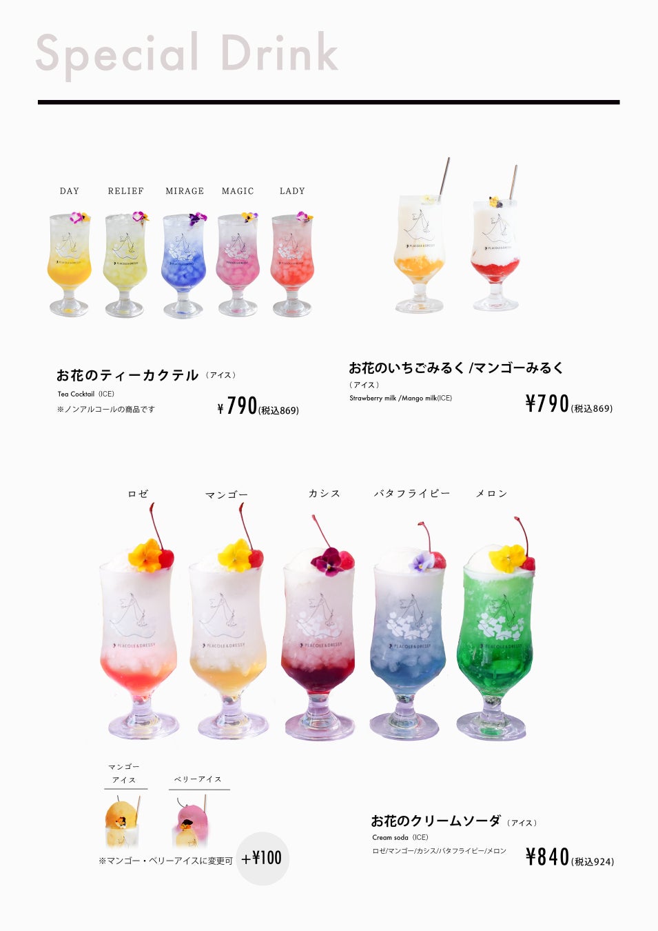 メニューには、美と健康を意識したエディブルフラワーがのった鮮やかなアサイーボウルや、名物のクロッフルを始め、写真映えもするクロッフルプレートなどの人気メニューが大阪でも展開されます。 ドリンクはオリジナルドレスアップティーを使用したティーカクテルやミルクティー、フレッシュなフラッペなど。また、24種類のオリジナルドレスアップティーを存分に楽しめるティーハーブティープランもレギュラーメニューに。ティーハーブティープランはミニ花瓶を飾りながらお好きな紅茶をお楽しみいただけます。 華やかなドレスとお花に囲まれた幻想的な空間で、特別な時間をお届けする『DRESSY CAFE』。 美しさとときめきが詰まった魔法の空間をぜひ体験してください。