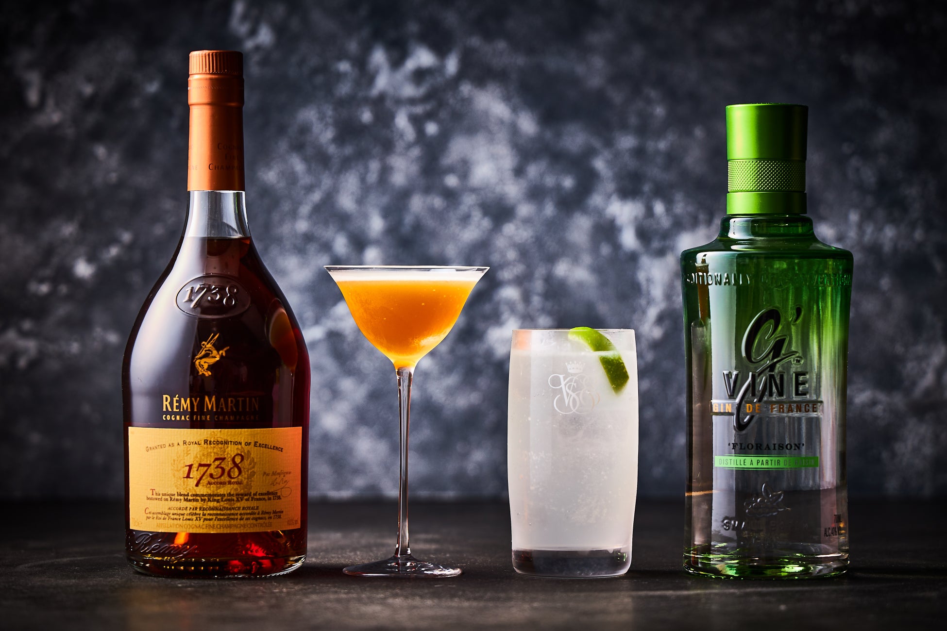芳醇な香りと滑らかな味わいが特徴のプレミアムなブランデー“レミーマルタン1738”をベースとした『サイドカー』。白ぶどうを原材料にした華やかな香りと風味の“ジーヴァイン フロレゾン”をベースとした『ギムレット・ハイボール』。どちらのベースもコニャック産のユニ・ブラン種を使用しています。