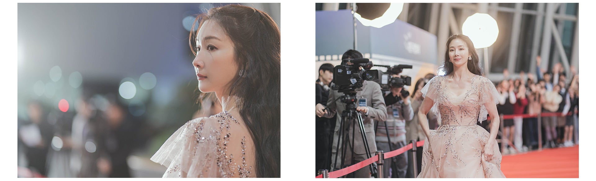 また、本作に特別出演し、90年代を代表するトップスター役を演じるチェ・ジウのスチールも公開。美しいドレスを身に纏い、レッドカーペットを堂々と歩く姿からはトップスターの品格を感じます。『流れ星』でチェ・ジウが演じる“伝説の女優”ウン・シウが、どのような活躍を見せるのか必見です。