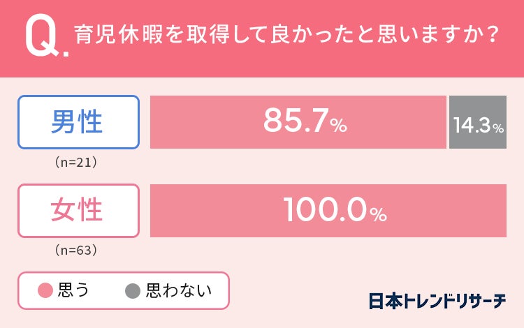 しかし男性の85.7%、女性の100%が「育児休暇を取得して良かったと思う」と回答しています。