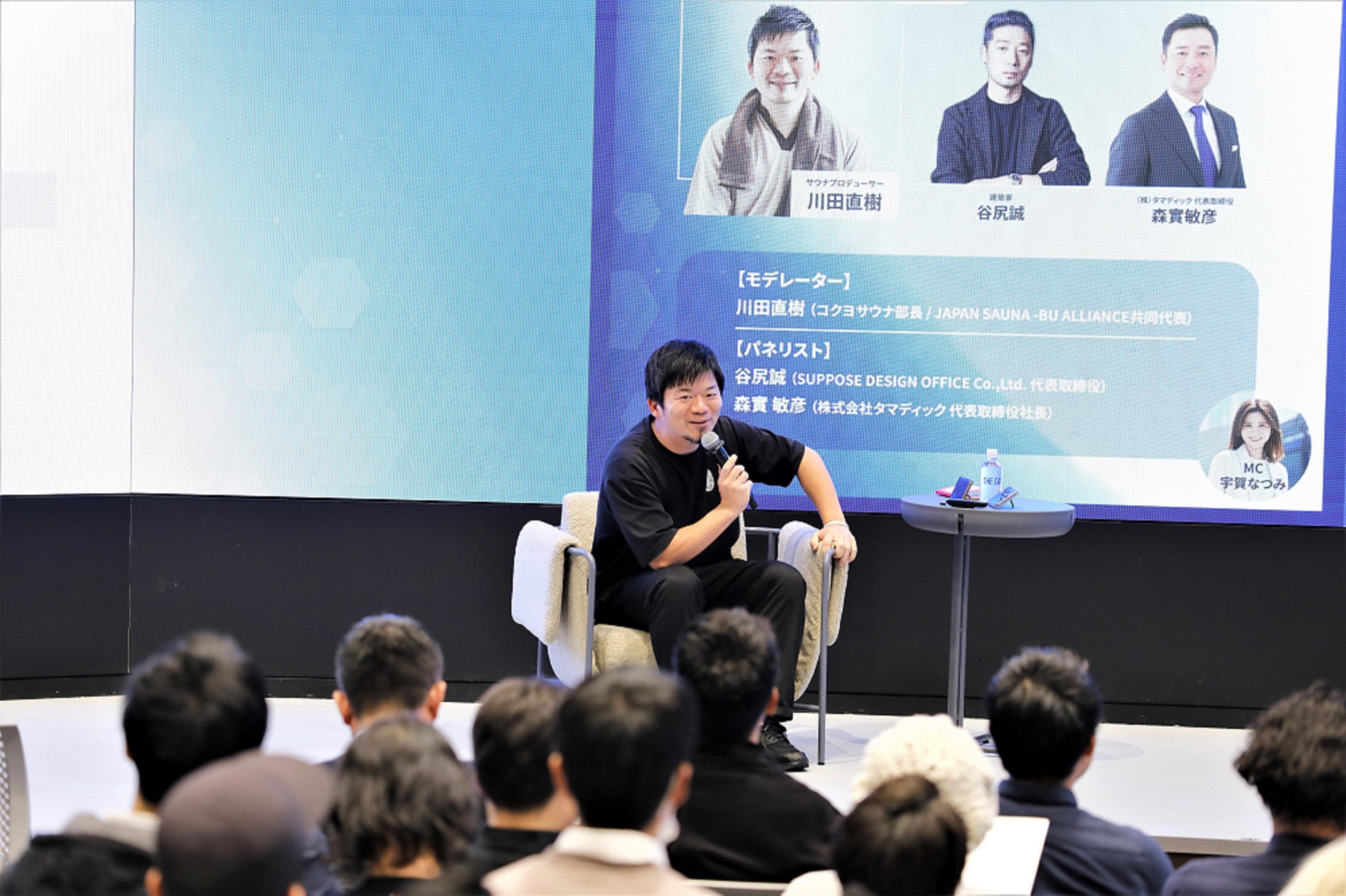 最後に、森實様より「会社だけではなく、病院や区役所などの待ち時間が“サウナ時間”になれば、もっと楽しい体験になるはず」と公共の場でのサウナ普及の可能性について言及がありました。そして谷尻様からは、「公共の場という観点では、“街”そのものの良さを活かすために、サウナに留まらずその街で過ごす人々の“体験”をどう作るかが、問われてきていると感じている」と、サウナの枠を超えた展望が語られ、本テーマのパネルセッションは結びとなりました。